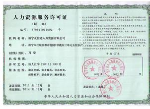 (3)《人力资源服务许可证》正、副本原件、工商营业执照和税务登记证复印件;