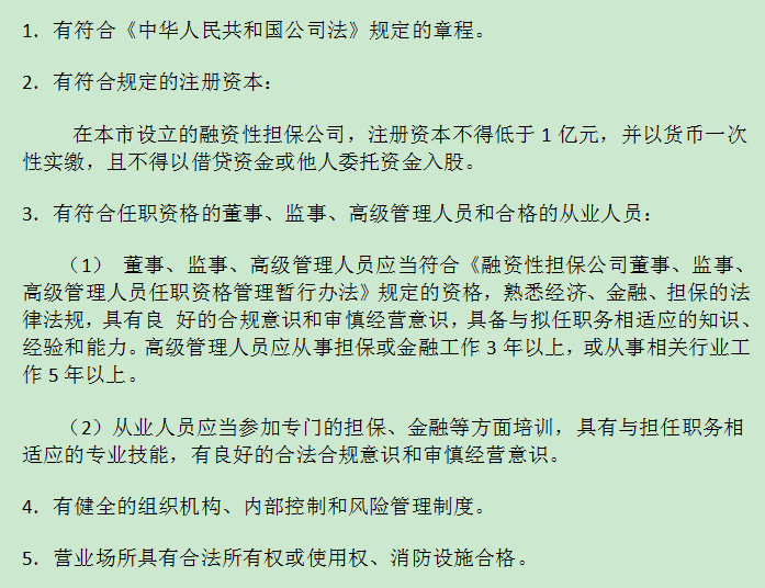 融资担保公司注册条件