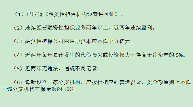 融资担保公司分支机构设立条件